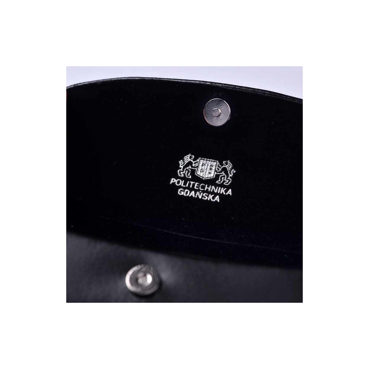 nadrukowane logo Politechniki Gdańskiej wewnątrz futerału